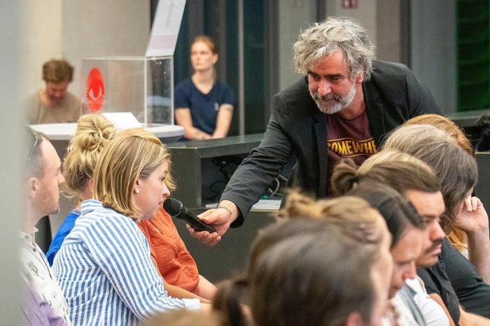 diskutiert, widerspricht, ergänzt und prägt den Abend entscheidend mit. Ein offenes