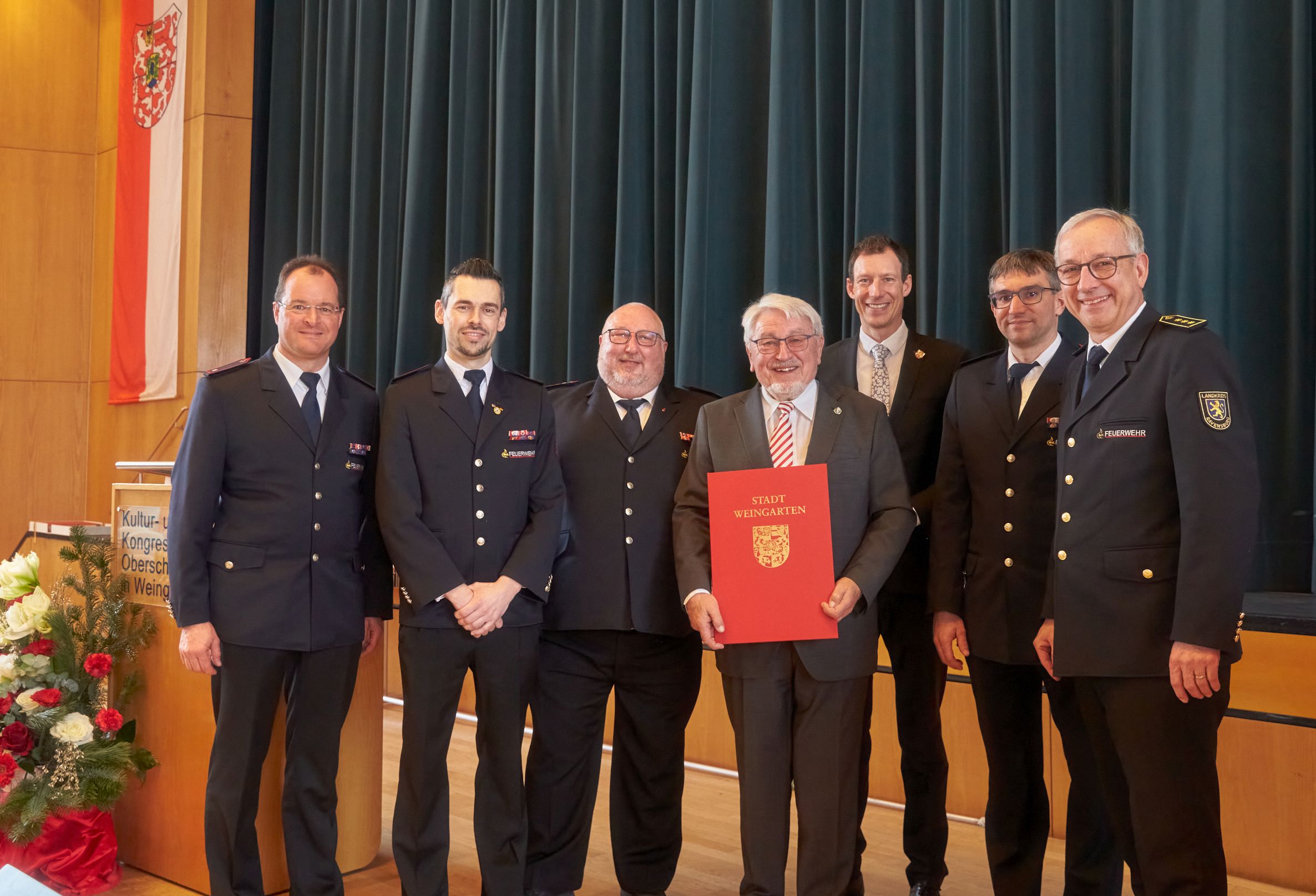 Junginger baute die Leistungsfähigkeit der Feuerwehr konsequent aus, schaffte moderne Fahrzeuge und neue Geräte an. Er knüpfte früh Bande zur Nachbarstadt Ravensburg, lange bevor interkommunale Zusammenarbeit selbstverständlich war. Er stellte die Weichen, dass die Feuerwehr Weingarten bis heute keine Nachwuchsprobleme hat, sondern, ganz im Gegenteil, einen exzellenten Ruf über die Region hinaus. „Sie waren Brückenbauer und Netzwerker, nicht nur zwischen Weingarten und Ravensburg, sondern im gesamten Landkreis, bis zur Partnerstadt Grimma und zu Weingarten in Baden“, so Moll, der Jungingers Sachverstand, Augenmaß und Fingerspitzengefühl lobte.