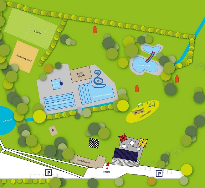 Umgeben von herrlicher Natur lockt das Freibad in Nessenreben Familien, Sportler und Naturverbundene. Neben dem großen Schwimmbecken gibt es einen separaten Nichtschwimmerbereich und ein Kinderbecken mit schattenspendendem Sonnensegel. Der Abenteuerspielplatz mit dem Piratenschiff "Klabautermann" lädt zum Toben und Spaß haben ein. Riesenrutsche, Sprungturm, Beachvolleyballfelder sowie Spiel- und Bolzplatz machen das Bad für Kinder, Jugendliche und Erwachsene attraktiv. Mit der großen Liegewiese bietet das Freibad auch ruhige Entspannungsplätze. Die Cafeteria rundet das Angebot ab.
