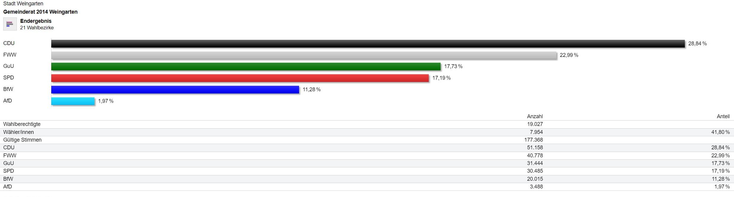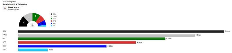 Das Endergebnis der Gemeinderatswahl 2014 in Weingarten finden Sie in dieser Präsentation. Das Endergebnis der Kreistagswahl 2014 finden Sie in diesem Portal.