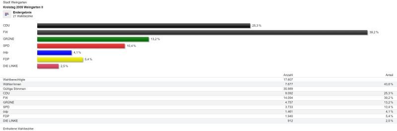Das Endergebnis der Kreistagswahl 2009 in Weingarten in dieser Darstellung.