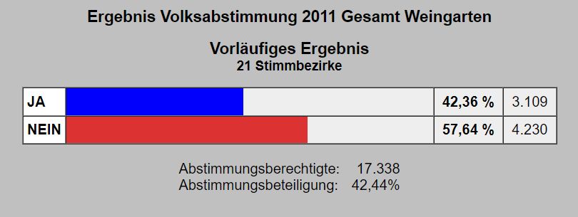 Das Endergebnis der Europawahl am Sonntag, 7. Juni 2009, in Weingarten finden Sie in diesem Portal. Angeboten wird auch eine barrierefreie Präsentation.