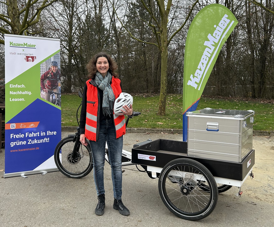 Seit kurzem ergänzt ein E-Lastenrad des Typs „Musketier“ den Fuhrpark des städtischen Baubetriebshofes. Gefördert wurde die Anschaffung mit einem Zuschuss von 2.093 Euro aus dem L-Bank-Förderprogramm für kommunale Elektrolastenräder.